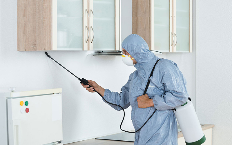 Pulverização: Com a utilização de um produto líquido piretróide, de baixo odor e grande eficiência, com todos os registros necessários na Secretaria da Saúde e Conselho Regional de Química. Dar-se a ênfase nos rodapés, embaixo de pias, frestas, ralos, mesas, ambiente externo, etc.